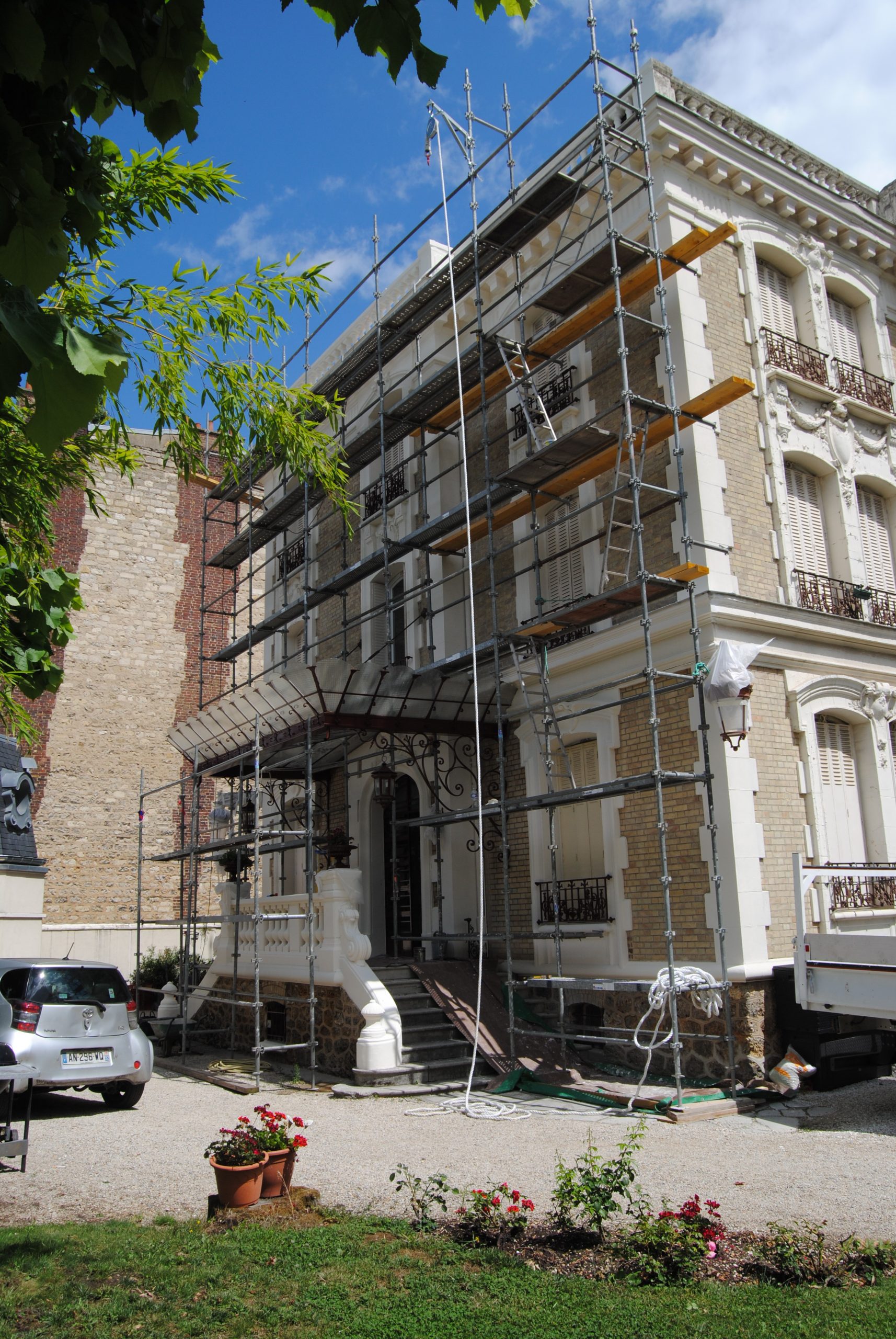 Ravalement à l’enduit à la chaux des façades.